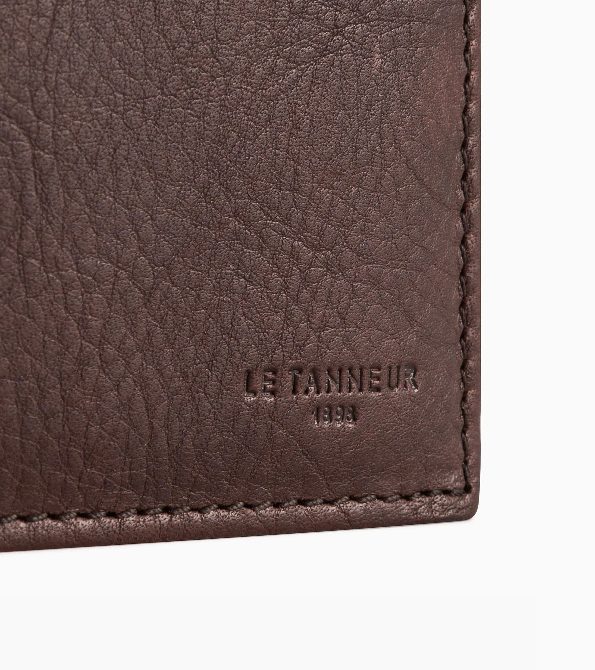 Large vertical 2 shutters oiled leather wallet with zipped coin pocket and engraved tone on tone Le Tanneur brand logo