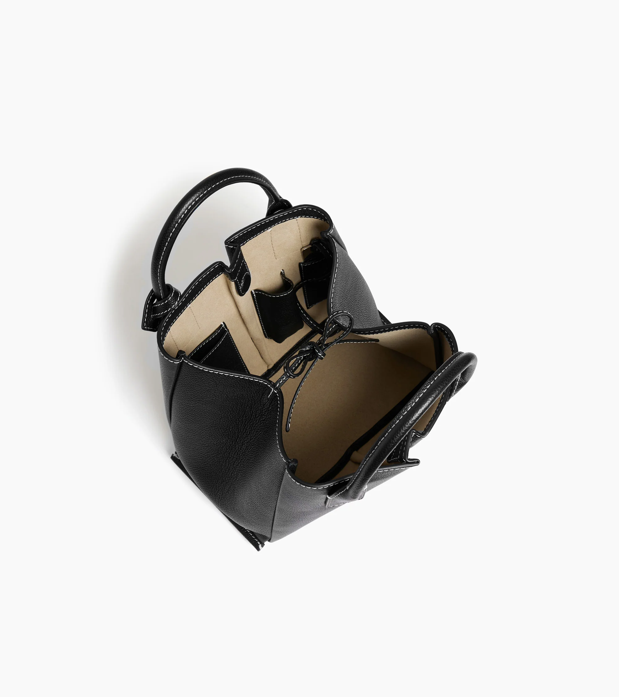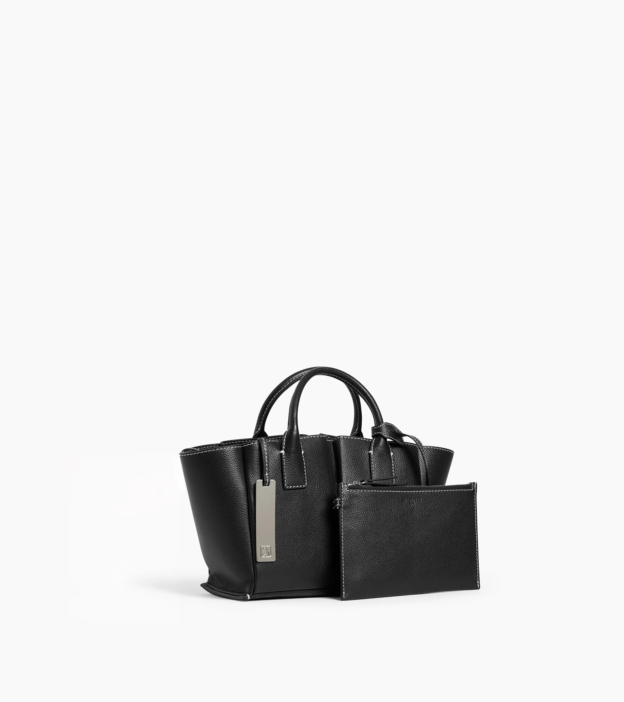 Small handbag with removable pouch, courtesy mirror, and tone-on-tone Le Tanneur branding. Microfiber suede lining. Can be worn by hand or crossbody thanks to its adjustable and removable strap.