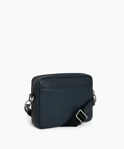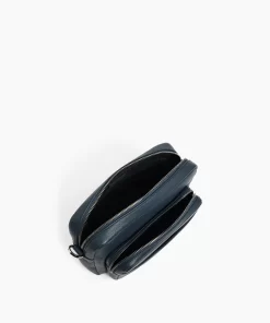 Camera bag with engraved metal elements in a gunmetal finish and tone-on-tone Le Tanneur branding. Navy blue 100% cotton lining. Can be worn over the shoulder or crossbody thanks to its adjustable and detachable shoulder strap.