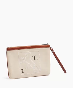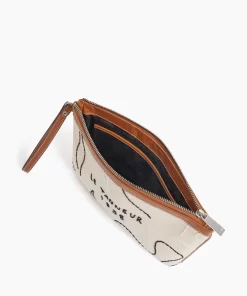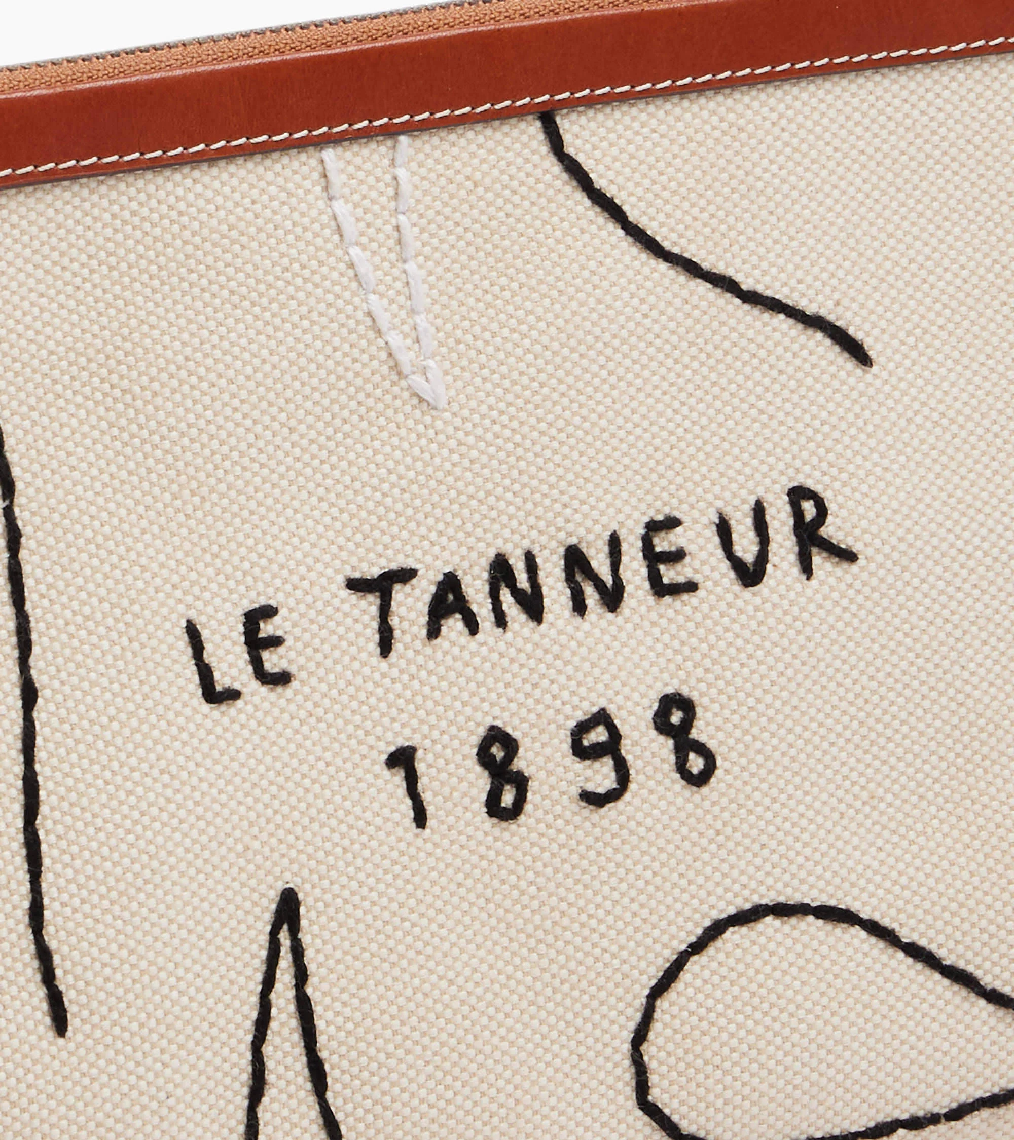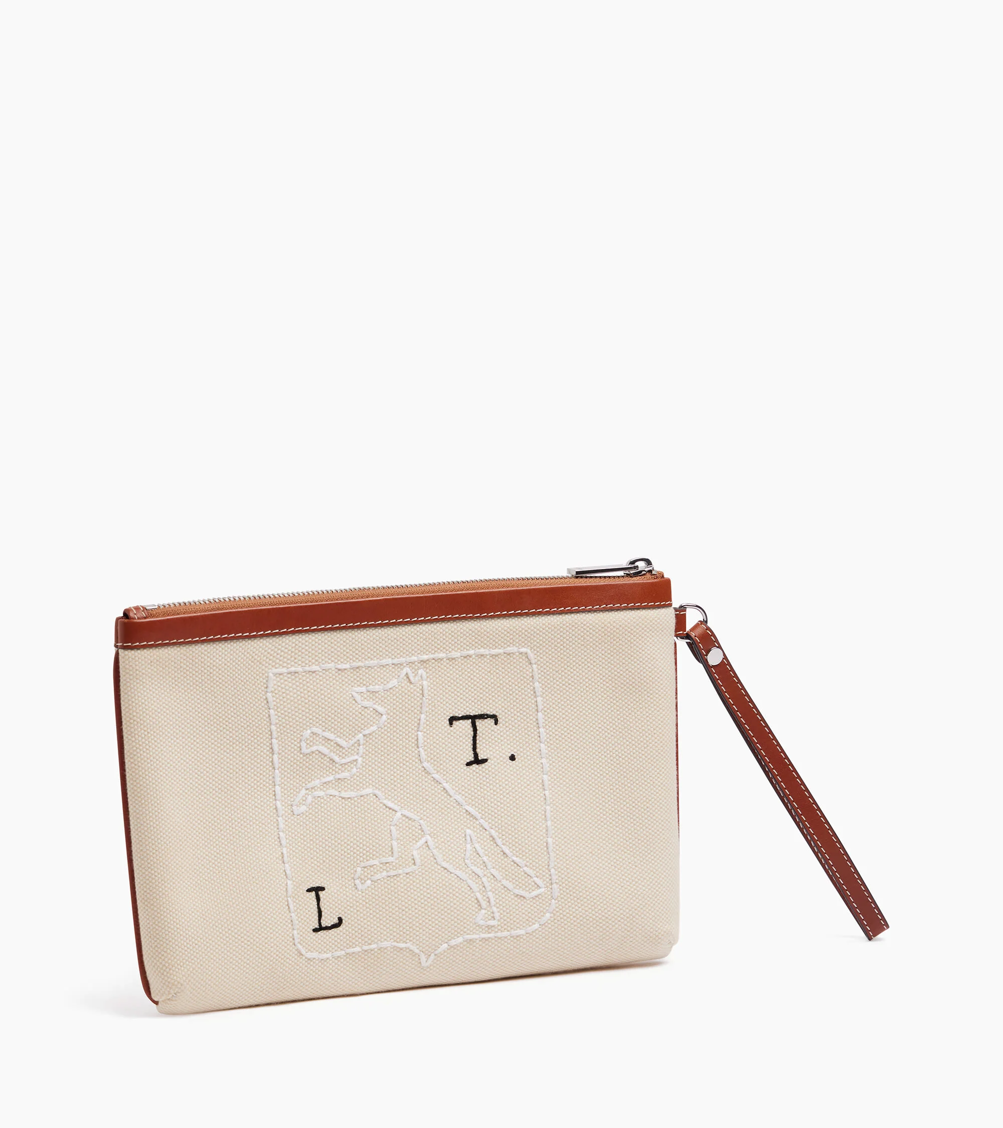 Le Tanneur zippered clutch bag in semi-leather and cotton canvas White Chalk Brown Tan | WOMENS Pouches & Belt Bags